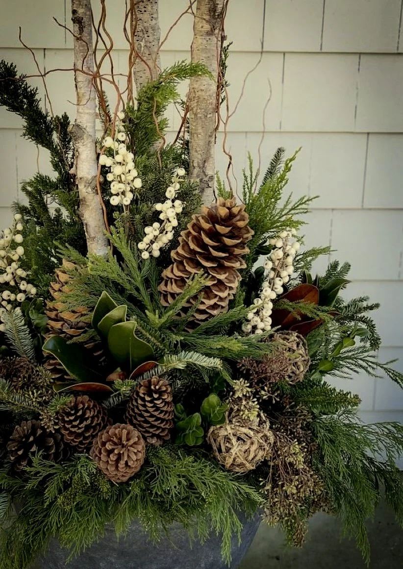 We create custom planters, garlands, wreaths, and indoor arrangements using fresh, long-lasting evergreens and natural accents — thoughtfully styled to complement your environment and enhance curb appeal.