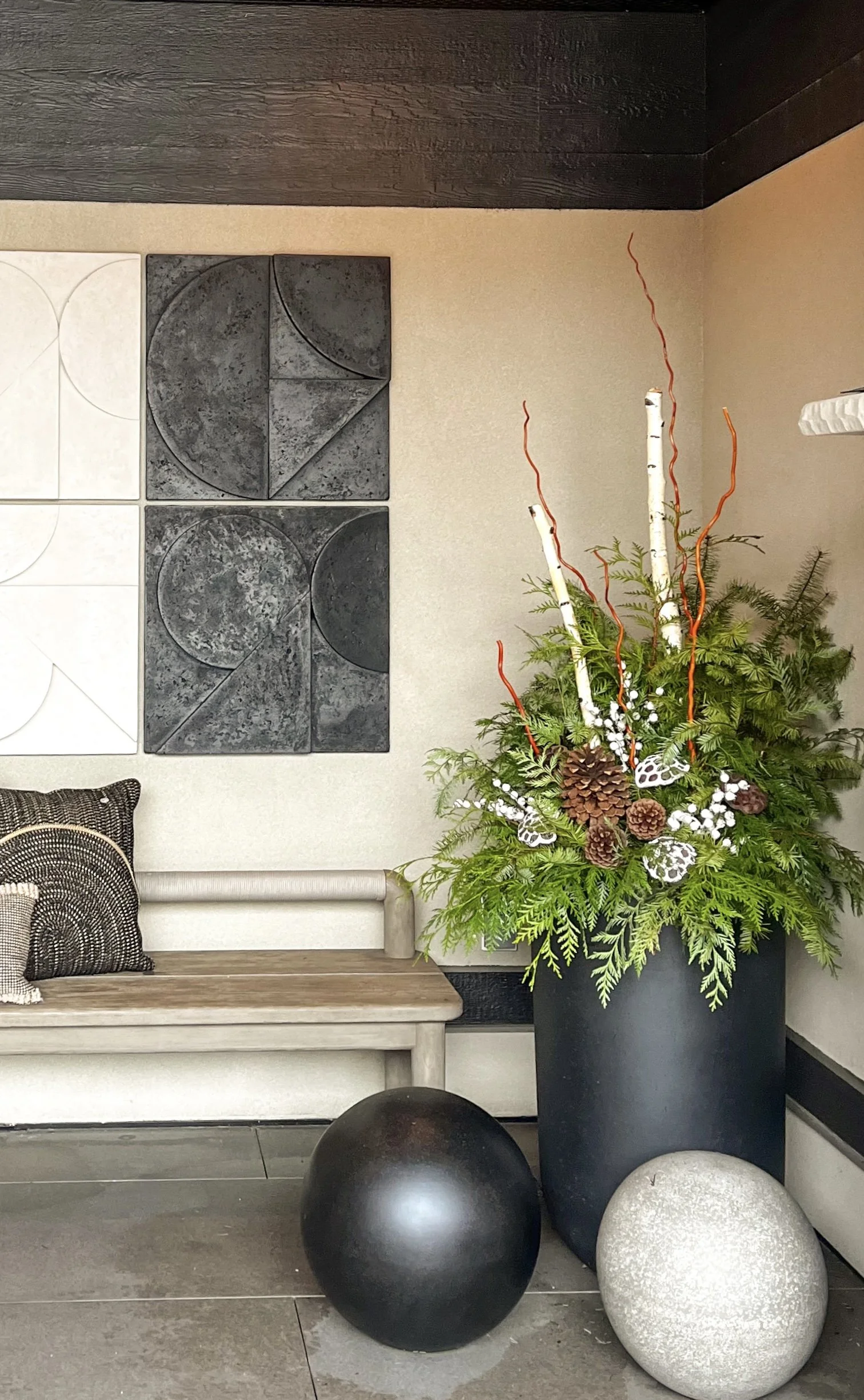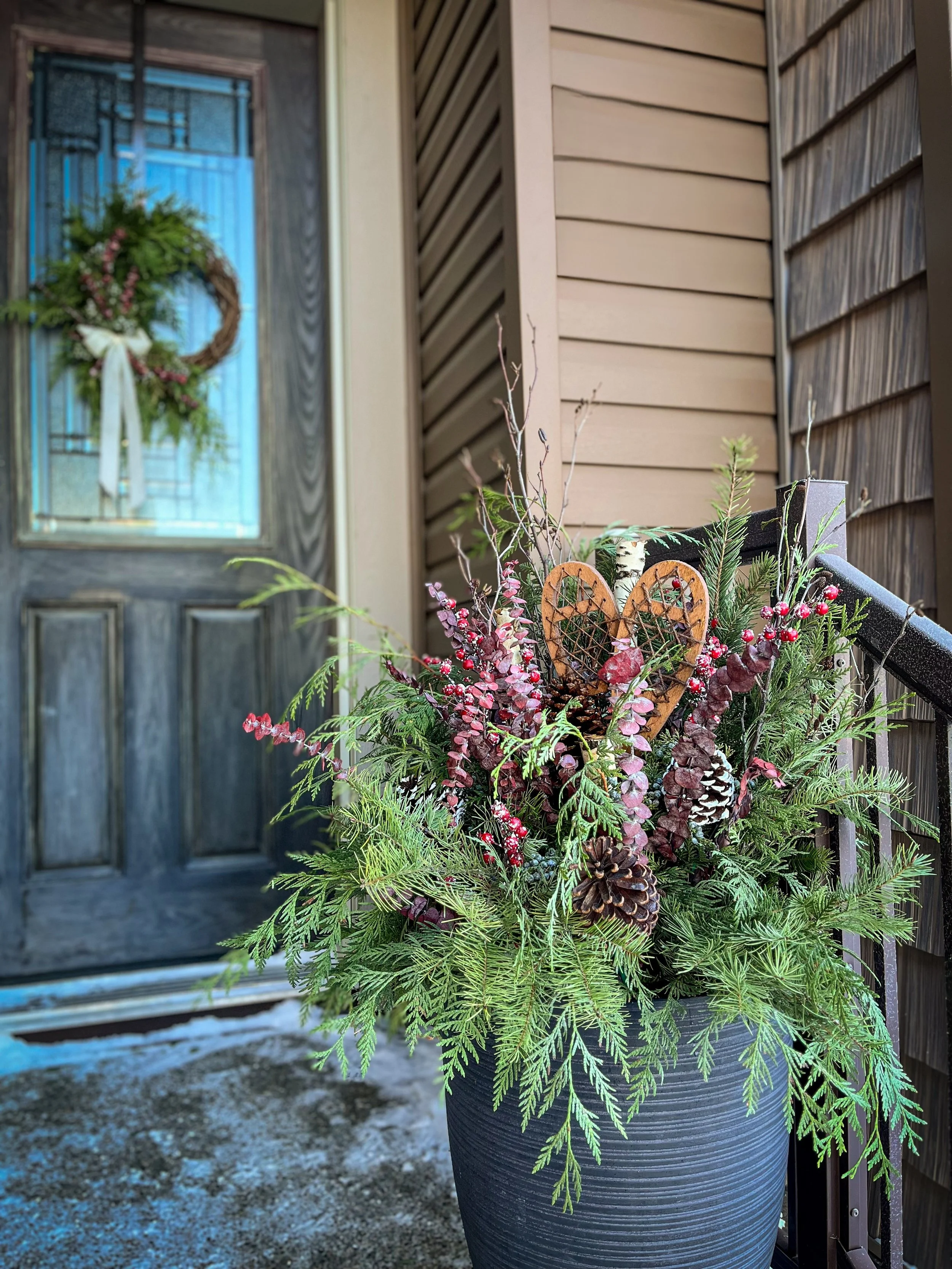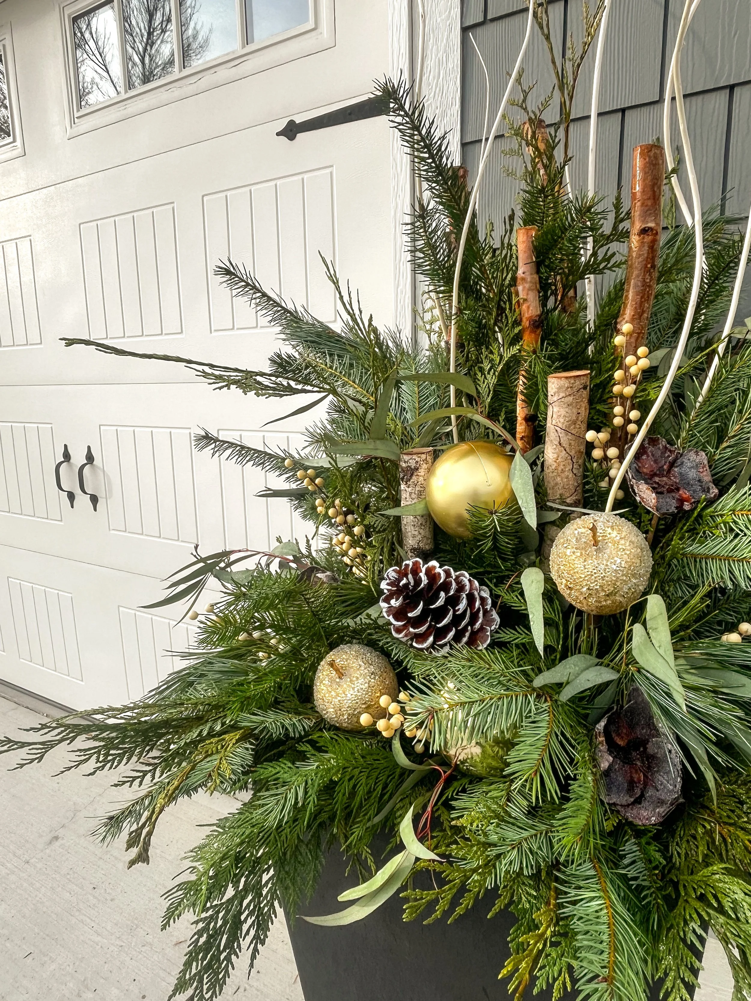 Our Seasonal Installations include spring flower planters, fall arrangements, and winter greenery designs—all created with a focus on natural materials and elevated style.